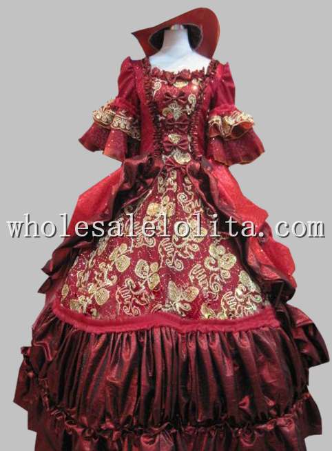 Home > Historical Costumes&Dresses > Marie Antoinette Dresses > 17 18th Century Baroque Rococo Dark Red Marie Antoinette Period Dress Halloween Costume