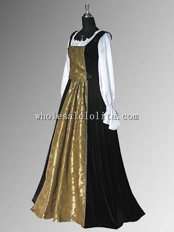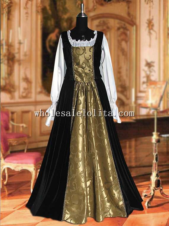 17th Century Black & Gold Brocade and Velvet Renaissance Baroque Dress