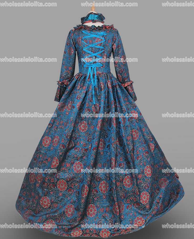 18th Century Period Dress Gothic Blue Marie Antoinette Gown Reenactment Theater Clothing