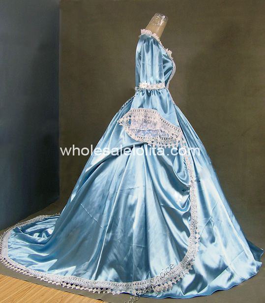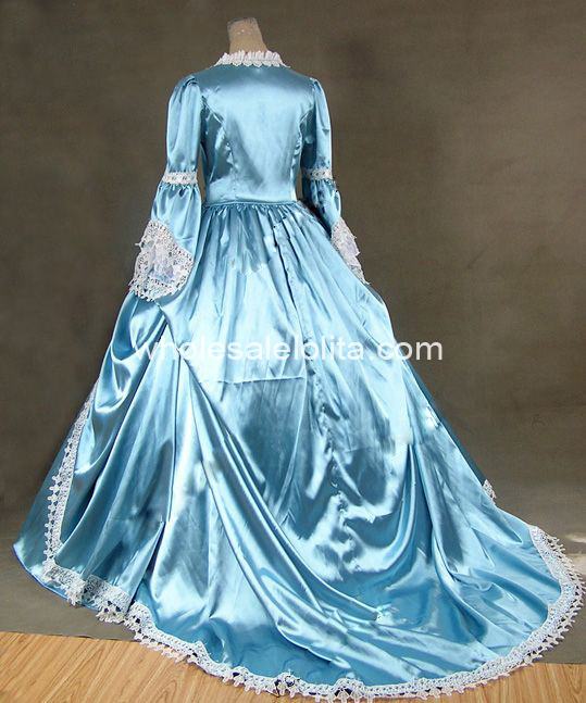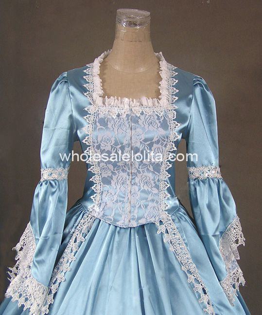 18th Century Theme Dress Blue and White Lace Marie Antoinette Period Wedding Dress Performance Clothing