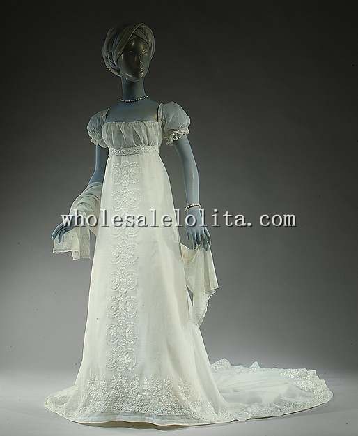 19th Century French Culture Sheer Cotton Evening Dress Wedding Dress