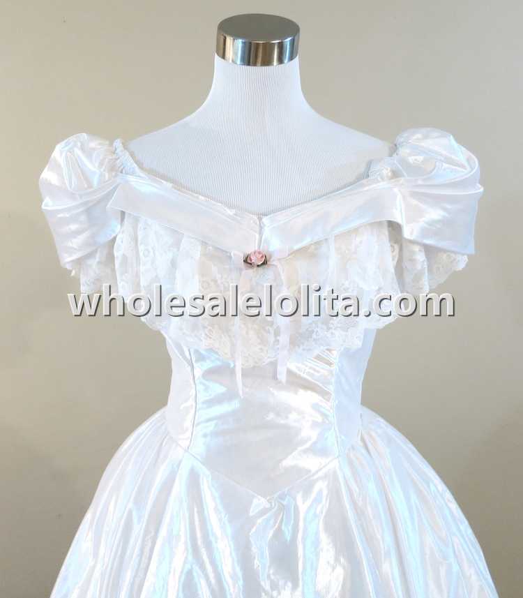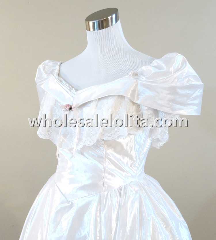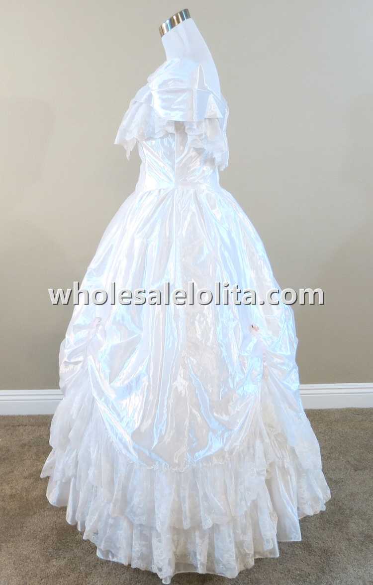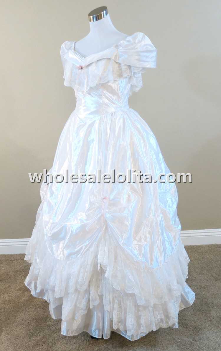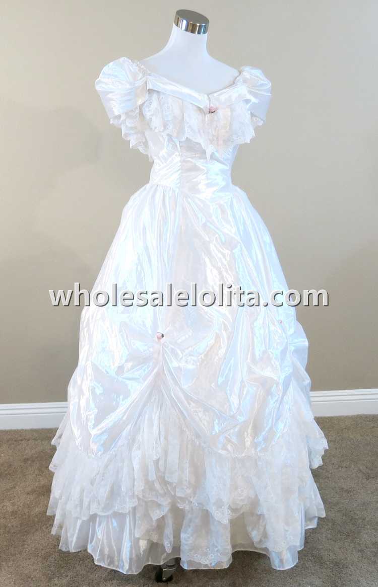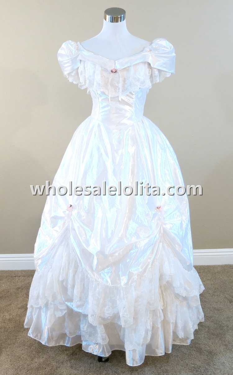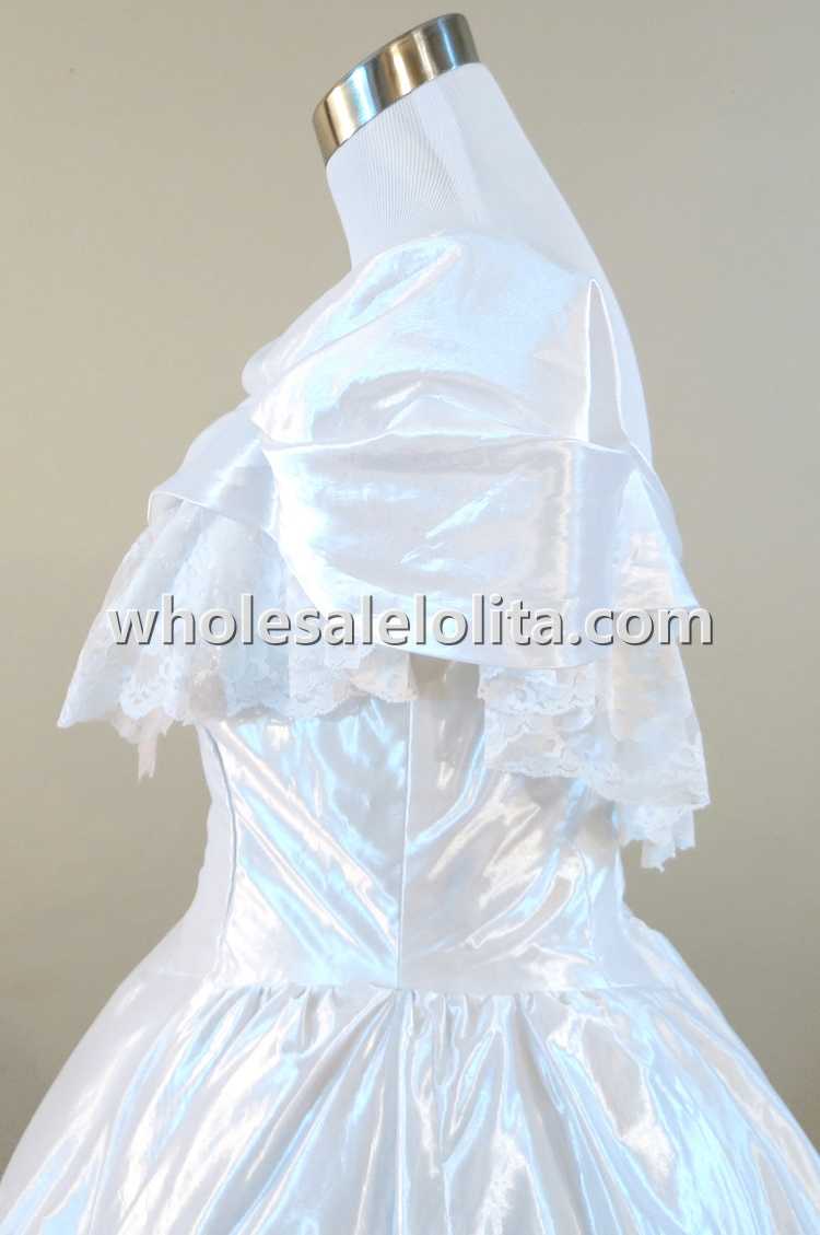Home > Historical Costumes&Dresses > Civil War Dresses > 19th Century White Ruffled Lace Victorian Civil War Period Dress Wedding Masquerade Ball Gown