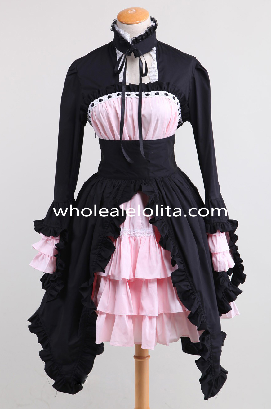 Black and Pink Splicing Bow Stand Collar Gothic Lolita Dress