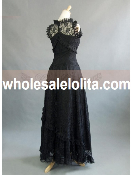 Home > Historical Costumes&Dresses > Victorian Ball Gowns/Evening Dress > Black Lace Sleeveless Vintage Victorian Dress
