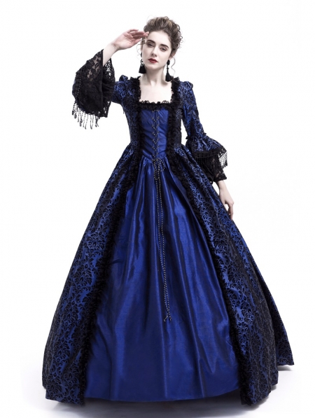 Blue Masked Ball Gothic Victorian Costume Dress Halloween Gown