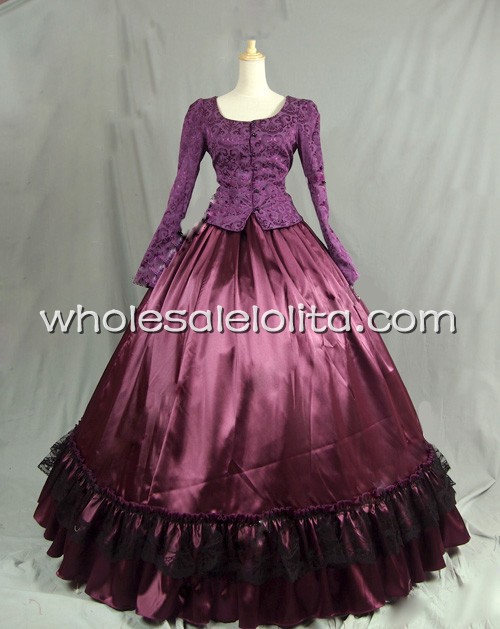 Civil War Victorian Satin Ball Gown Dress Punk Reenactment Stage Costume