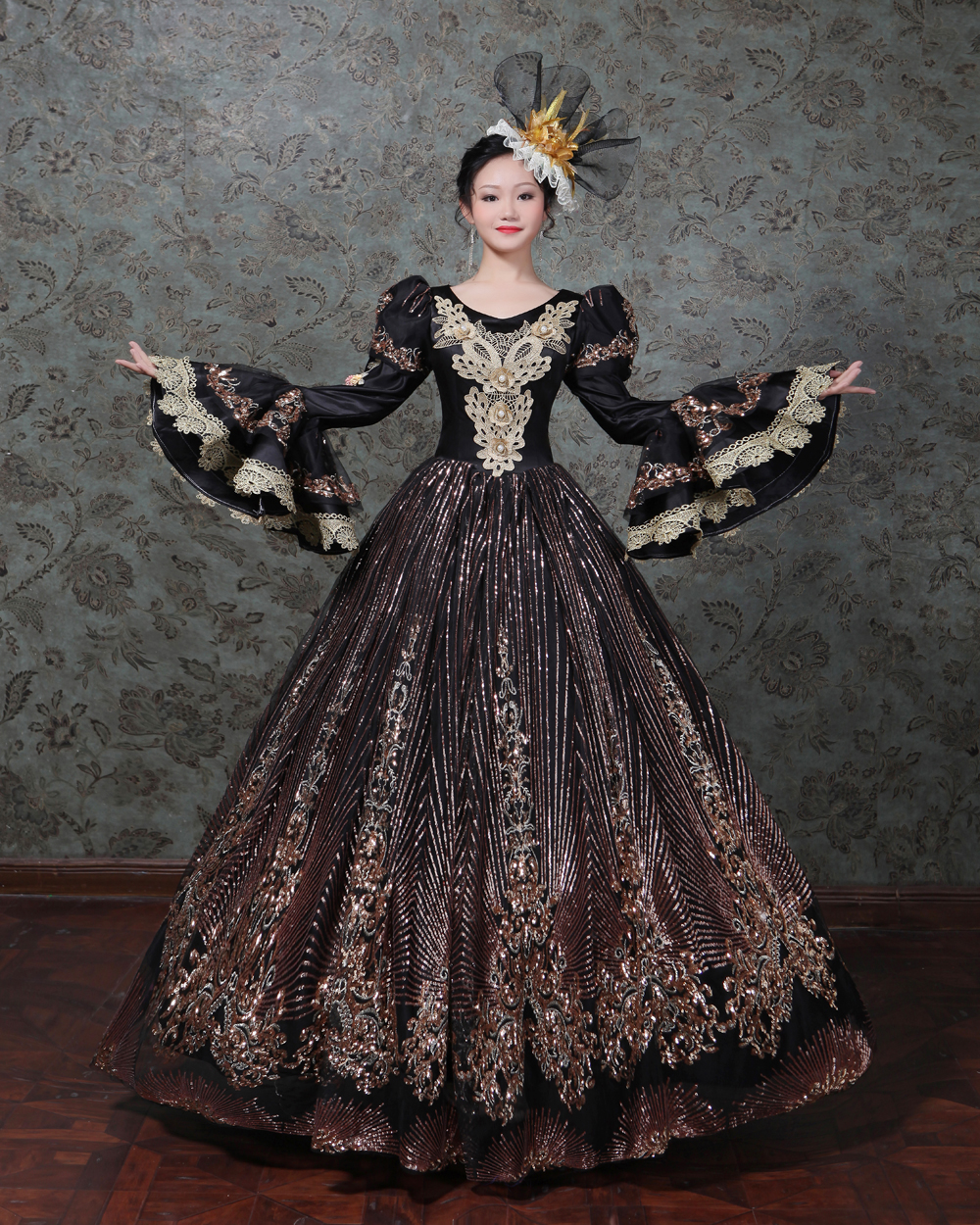 Home > Historical Costumes&Dresses > Marie Antoinette Dresses > Dark Black Marie Antoinette Victorian Dress Prom Gown Halloween Dress