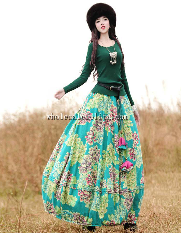 Fashion Printing Cotton Elastic Waist Big Hem Skirt