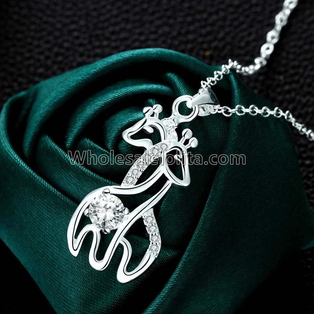 Fashionable Platinum Necklace with Double Deers Pendant for Versatile Occasions