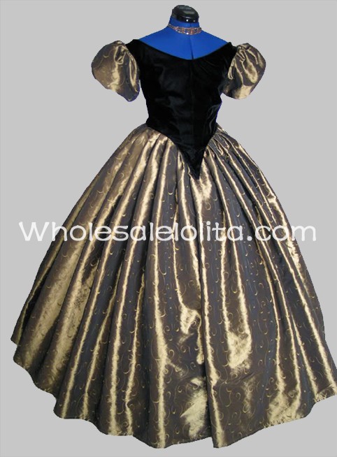 Gorgeous Olive Green and Black Civil War Victorian Ball Gown Dress