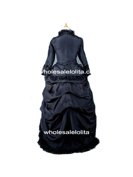 Gothic Black 2-Pieces Victorian Bustle Period Dress Halloween Themed Costume