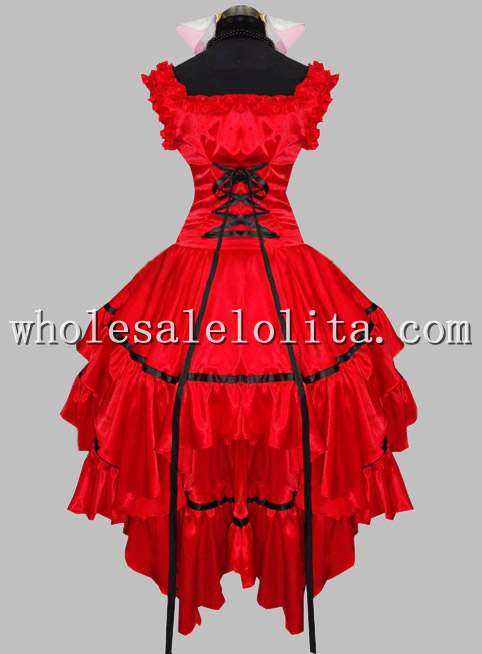 Gothic Red Silk-like Court Lolita Princess Dress