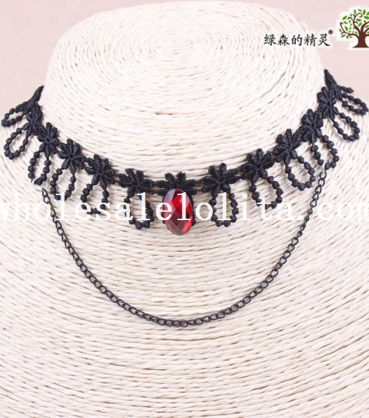 Hotsale Black Lace Collar Choker Necklace Pendant with Red Gem