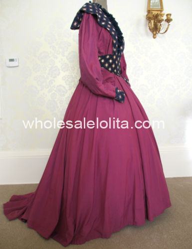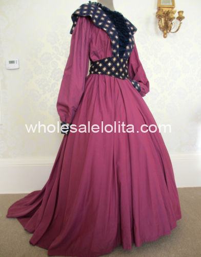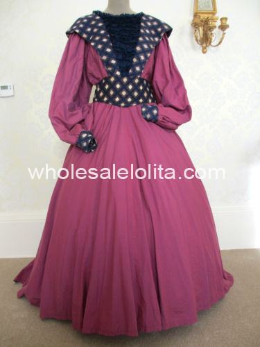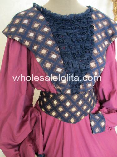 Ladies Victorian Dostume Dress Purple Navy Blue