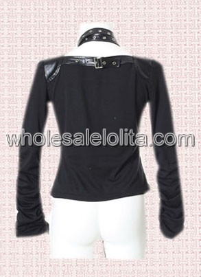new Black Long Sleeves Cotton Lolita Blouse with Leather