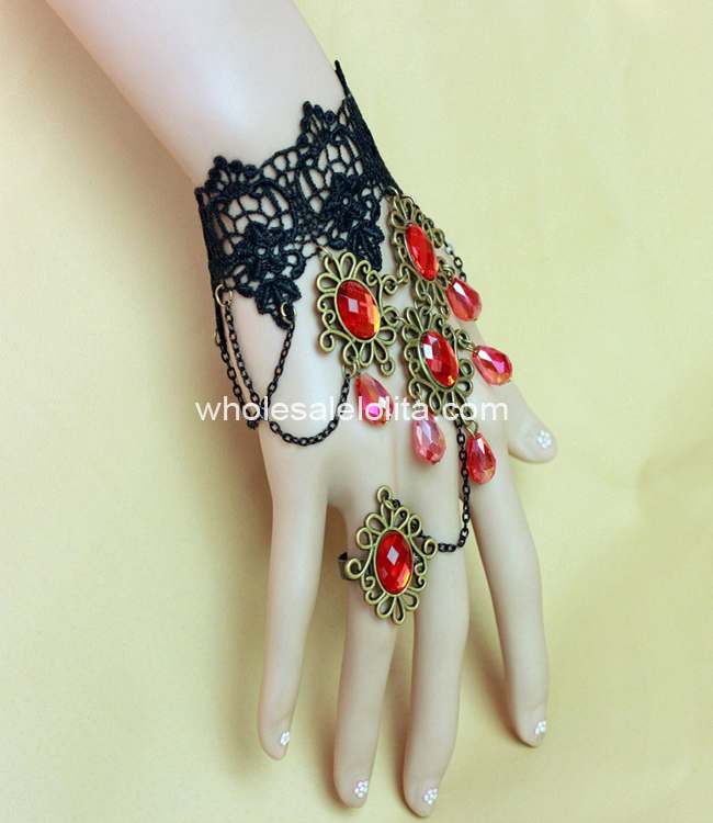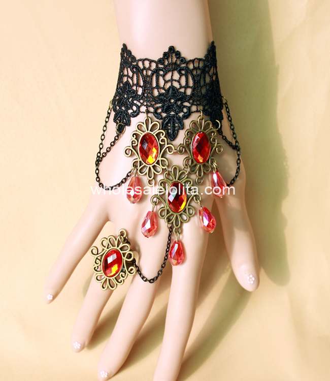 New Black Vintage Lace Red Crystal Ladies Bracelet & Ring