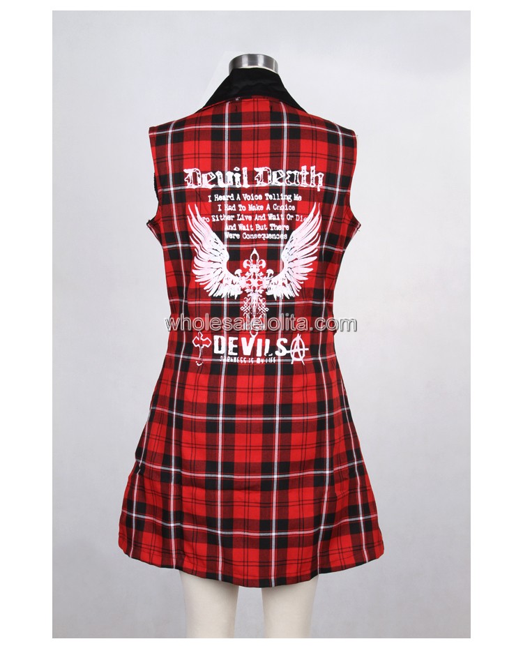 Red Checks Sleeveless Devil Death Punk Lolita Outfit