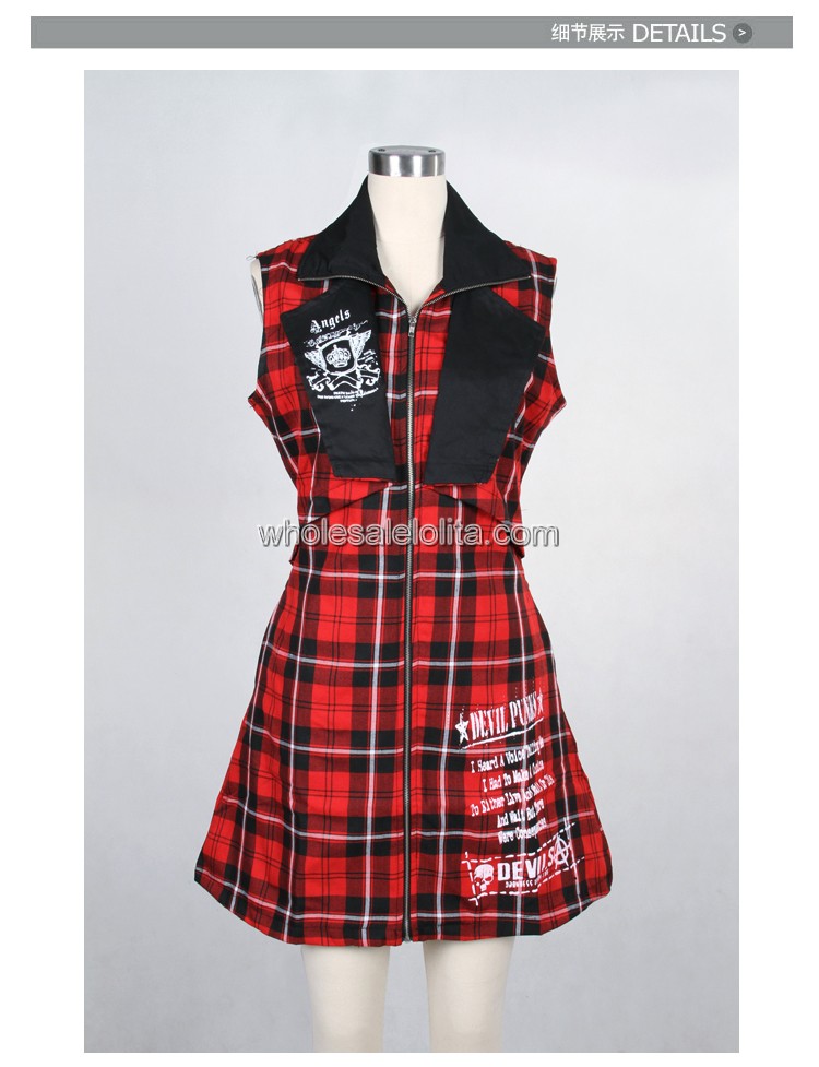 • Red Checks Sleeveless Devil Death Punk Lolita Outfit