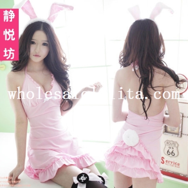 Sexy Pink/White Bunny Girl Sleepwear Cosplay Dress