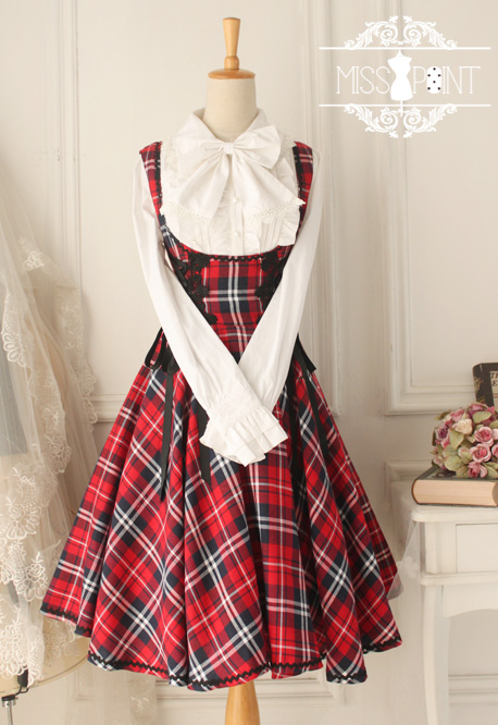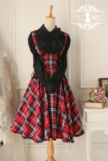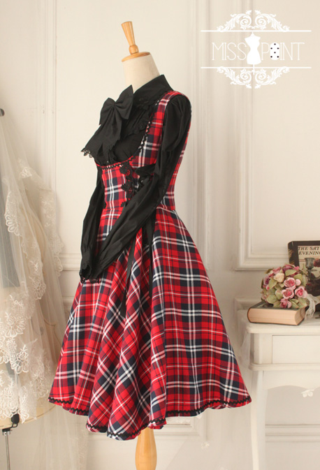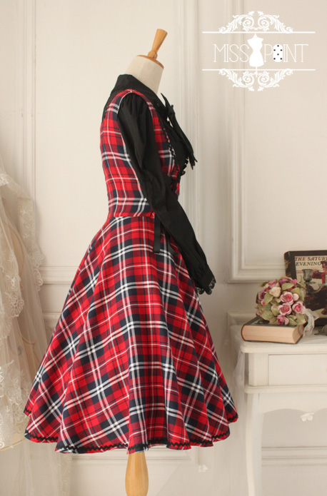 Home > Lolita Clothing > Gothic Lolita Dresses > Versailles Rose Vintage Gothic Style Plaid Dress