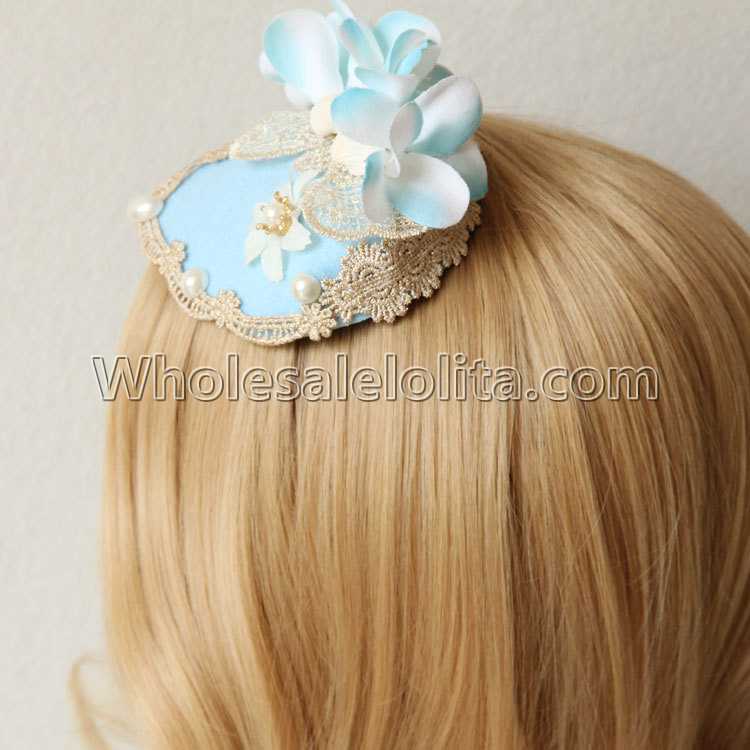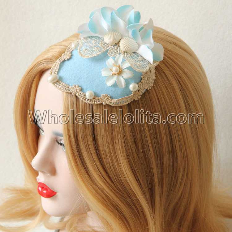 Vintage Gothic Sky Blue Lace Headdress Masquerade Accessories