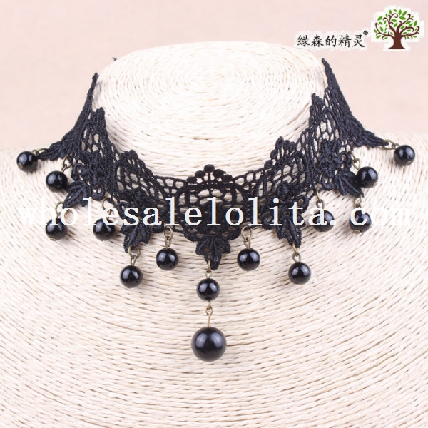 Women's Hotsale Collar Choker Black Lace Beaded Pendant Necklace for Prom